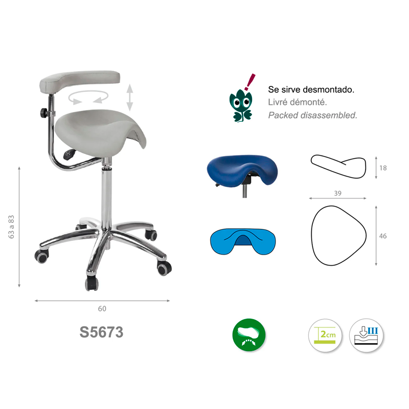 Perfecto para profesionales que buscan ergonomía y funcionalidad, este taburete facilita movimientos y adaptaciones rápidas, contribuyendo a reducir la fatiga muscular y favorecer un ambiente laboral más saludable. Su diseño moderno se integra fácilmente en cualquier entorno.