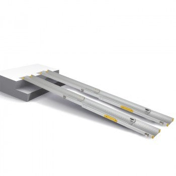 Las rampas telescópicas son las más versátiles. Pueden usarse en diferentes lugares y situaciones, donde tanto el desnivel como la longitud de las rampas sean variables. Una vez fuera de uso y plegadas ocupan menos espacio que otras rampas equivalentes y son muy fáciles de guardar y de transportar, incluso en el maletero de un vehiculo.Ancho de carril de 25 cm.