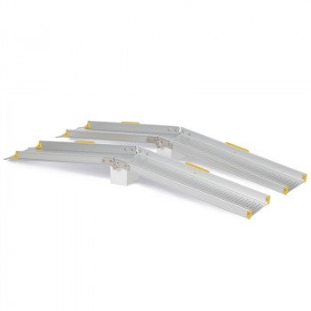 Fabricadas en aluminio, muy ligeras a la vez que robustas y resistentes. No requieren mantenimiento. Recomendadas cuando se utilizan en el mismo lugar o con el mismo desnivel, al ser de longitud fija. También sirven para salvar umbrales. Una vez plegadas son fáciles de transportar y de guardar incluso en un maletero.