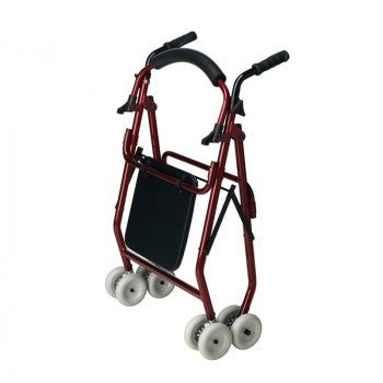 Andador rolator muy ligero y maniobrable, fabricado en aluminio. Fácil de plegar y guardar. Freno por presión en los puños. Incorpora un cómodo asiento acolchado de 30 x 30cm y una cesta porta objetos.