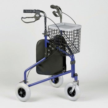 Caminador de tres ruedas diseñado especialmente para maniobrar en espacios reducidos. Con un radio de giro mínimo puede girar sobre sí mismo incluso en pasillos estrechos. Los puños son graduables de altura y llevan frenos para controlar mejor la marcha. Incorpora una práctica cesta y una bandeja para trasladar objetos de un lugar a otro de la casa y también una bolsa para llevar objetos de manera más discreta si los desplazamientos son en el exterior. Se pliega muy fácilmente para guardarlo por ejemplo tras una puerta, o facilitar su transporte.