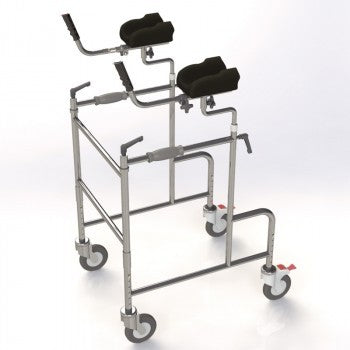 Caminador con soportes para los antebrazos de poliuretano blando. Diseñado para los procesos de rehabilitación y para responder a las necesidades de pacientes con reumatismo o artritis. Plegable. Altura graduable de 97 cm a 142 cm.