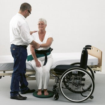 PEDITURN es un disco giratorio blando recomendado para uso profesional, que gira fácilmente sin apenas fricción para reducir el estrés en las rodillas y los tobillos durante las transferencias. Por ejemplo: de la silla a la cama, tal como muestra la imagen. Diámetro: 40 cm.