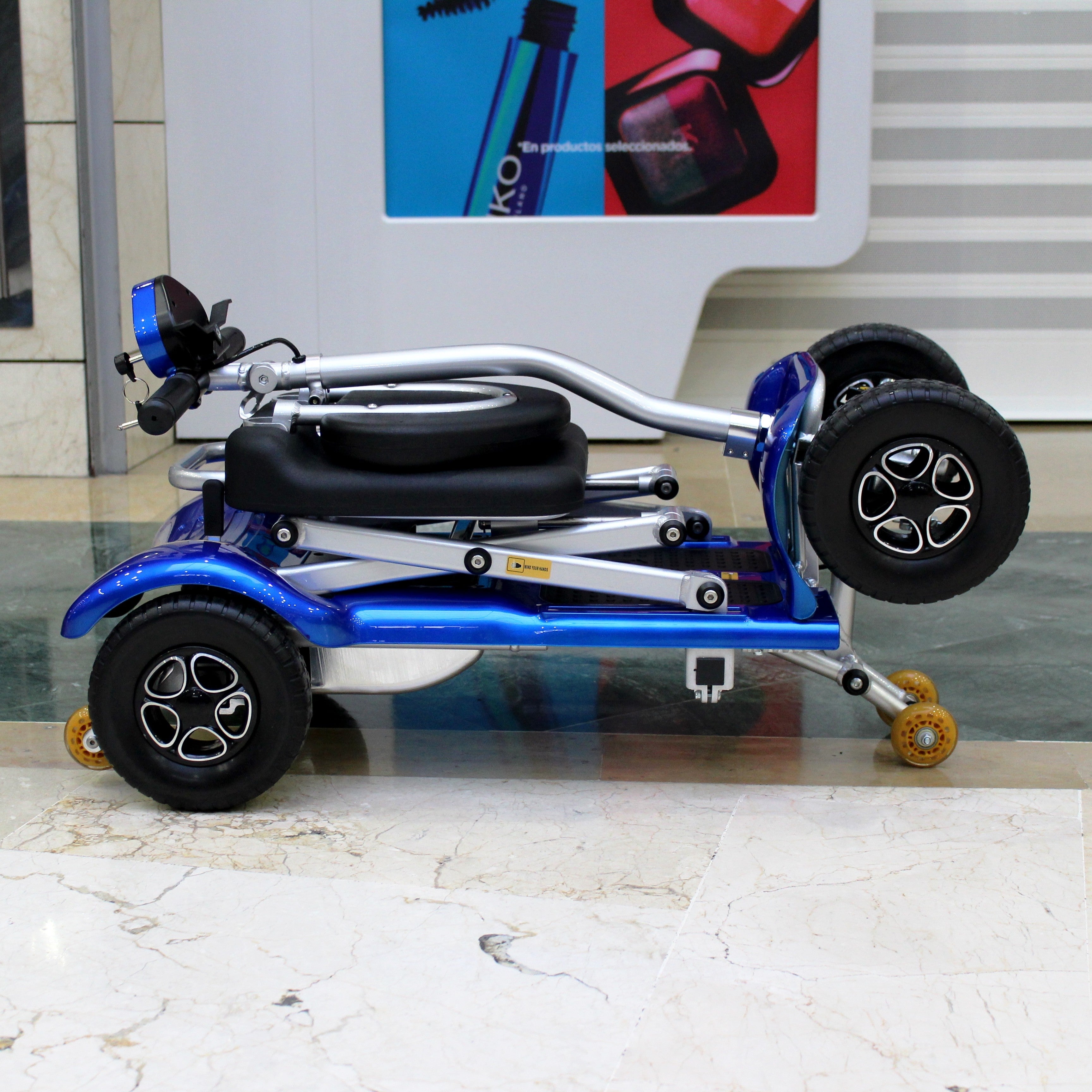 - Compacto y con una maniobrabilidad perfecta que permitirá al usuario acceder a espacios de dimensiones reducidas. Además sus dimensiones permiten que, una vez plegado, se pueda transportar cómodamente en el maletero del coche.