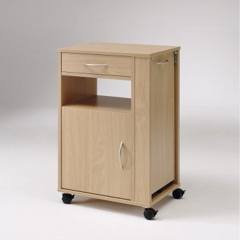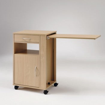Con armario, cajón y mesita auxiliar abatible para comer, leer, etc. Con ruedas de 50 mm.