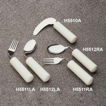 Cucharas y tenedores curvados a izquierda o derecha y cuchillo mecedora.