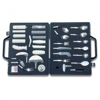 Un atractivo maletín con un juego de 33 piezas modulares que responde virtualmente a todas las necesidades posibles, de tipo funcional, estético, ergonómico, económico... Concebido para evaluar pacientes de manera individual. La gama incluye cubiertos estándar, angulados, con más peso, ligeros, delgados, gruesos, utensilios para hacer cubiertos especiales...