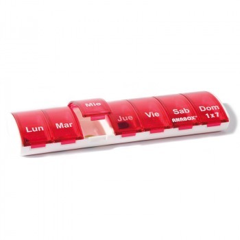 Siempre hay un pequeño lugar donde llevar el pastillero semanal 1x7. Siete compartimientos guardan los medicamentos de una semana. Ideal para la oficina y para personas que siempre están viajando. Cada compartimiento se cierra independientemente para que no se caigan las pastillas de forma accidental. Para abrir los compartimientos es suficiente con presionar ligeramente en medio de la tapa. Suministrado en expositor de sobremesa con 12 unidades de variados y atractivos colores. Apto para el lavavajillas.