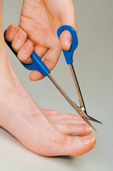 Con grandes asas que permiten utilizar toda la mano para controlar mejor la tijera. La tijera es extralarga para los que tienen dificultad en agacharse. Las cuchillas curvadas de acero inoxidable ofrecen una buena posición para cortar. La cuchilla superior está ligeramente dentada para que no se resbale en la uña.