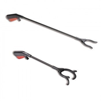 Unas pinzas realmente útiles y prácticas para un gran número de actividades de la vida diaria. Gracias a sus bien estudiadas pinzas con un imán en el extremo proporcionan la habilidad necesaria a personas con disminución de la fuerza o la capacidad de agarre. Las mordazas de la pinza rotan sobre sí mismas y así no hay necesidad de girar el brazo. La pinza con garfio combina varias funciones y es especialmente útil para vestirse.