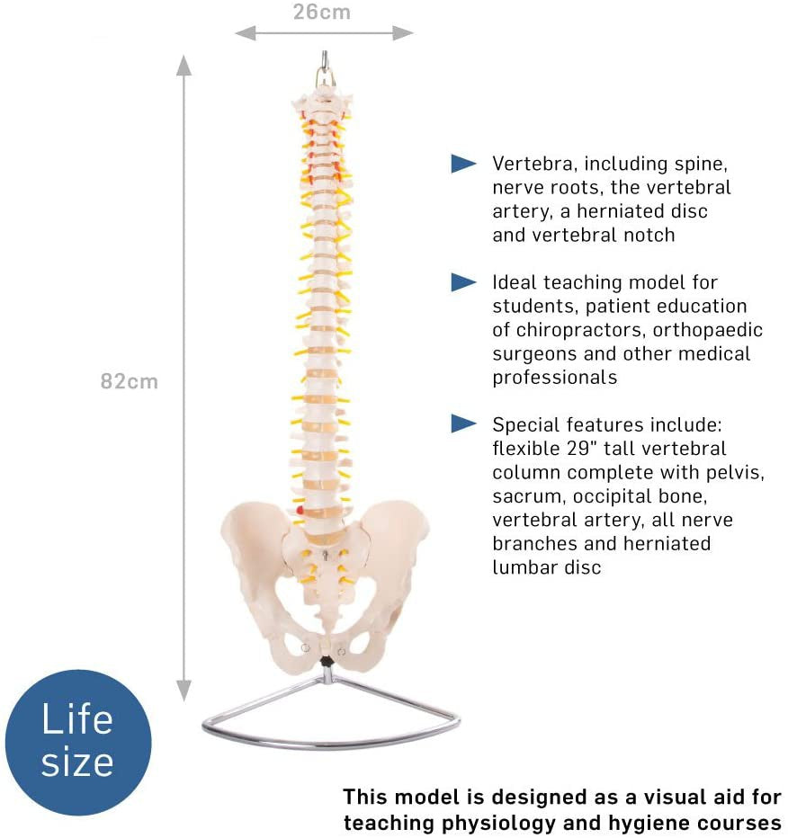Este modelo anatómico de Columna Vertebral Tamaño Natural con Pelvis es ideal para su uso en entornos de fisioterapia, ya que permite estudiar de manera detallada la estructura de la columna vertebral y la pelvis.