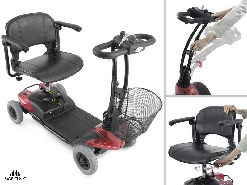 Su marcha adelante y atrás que se puede manejar si se desea con una sola mano. La facilidad de desmonte en 3 partes principales: Scooter, asiento y reposabrazos.