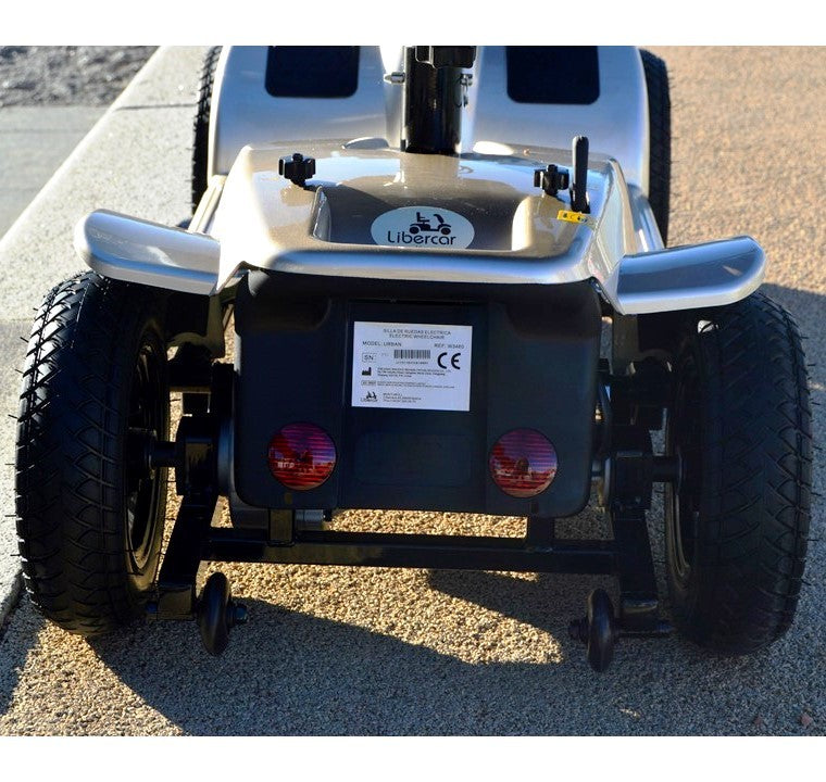- Rendimiento extraordinario en exteriores: Dotado de unas ruedas neumáticas grandes de 26cm., llantas de aleación, amortiguación trasera doble regulable y con una altura al suelo de 130mm el scooter Libercar Cruiser se desenvuelve a la perfección en exteriores y permiten superar los obstáculos con facilidad.