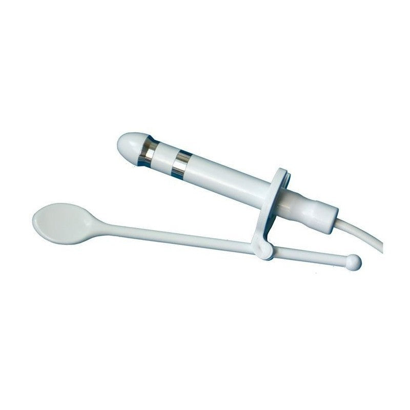 - La pestaña de sujeción ayuda a sujetar la sonda en su sitio y evita el riesgo de expulsión durante el tratamiento.