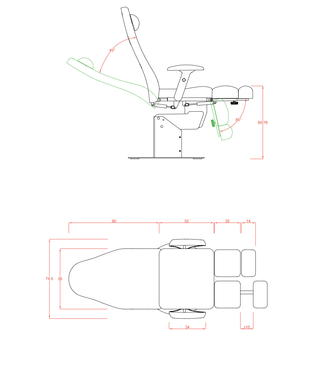 Sillón de podología de diseño minimalista con 1 motor para regular la altura.