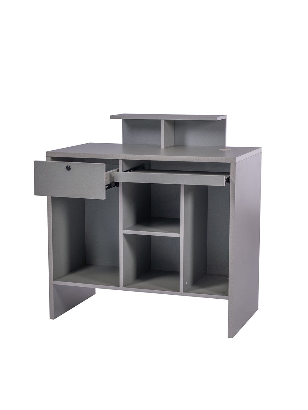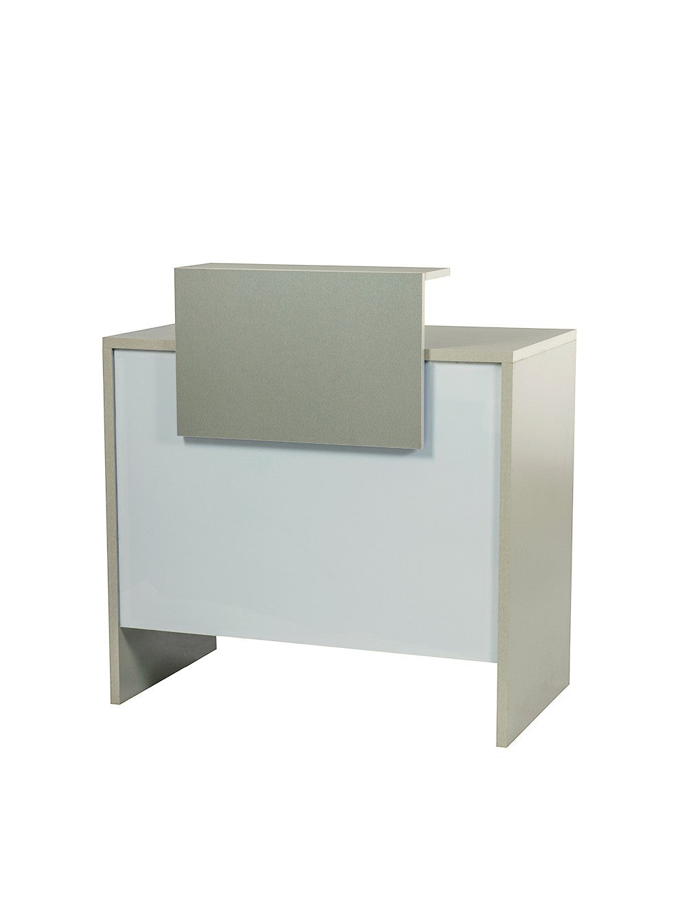 Recepción de estilo práctico y sencillo de color blanco y gris.