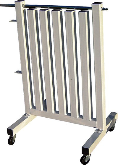 La estructura incluye ruedas de movimiento suave y una barra resistente que permite cargar y descargar discos de forma segura. Ideal para clínicas, centros de entrenamiento y espacios donde se requiera flexibilidad en la distribución del equipamiento.