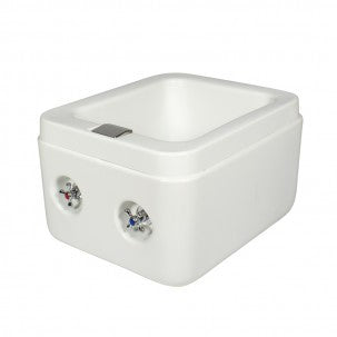 Una bañera estacionaria que permite al especialista realizar todo tipo de trabajos de pedicura de una manera práctica y cómoda, ya que gracias a sus sistema permite en segundos cambiar sin esfuerzo el agua calienta a fria.