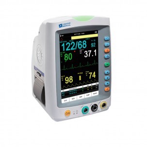 El equipo se completa con una interfaz digital, un bloque de suministro de potencia y los accesorios relativos para la medición de ECG, NIBP, SpO2 y temperatura.