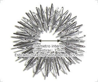 Anillos elásticos para masajear los dedos,con movimientos hacia arriba y hacia abajo. Buen acabado que permite un masaje intensivo. Diámetro interior: 7 mm. Máximo estiramiento: Aprox. 25 mm.