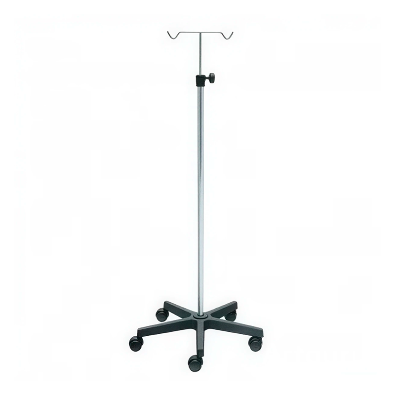 Descripción Soporte de suero de acero cromado, con base de PVC y 2 colgadores de acero cromado (Ref. EM-502)
