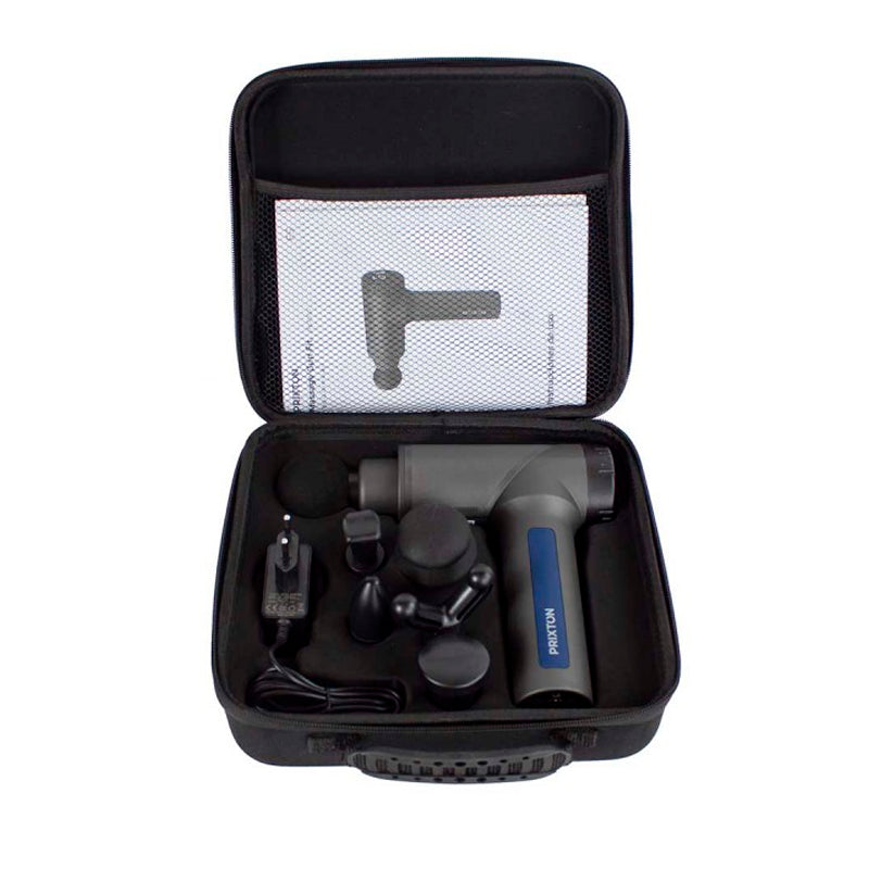 La pistola de masaje generalmente tiene un diseño similar a una pistola, con un mango ergonómico y un cabezal que vibra o golpea a alta velocidad, está diseñado para ser de fácil manejo y alcanzar áreas específicas del cuerpo sin esfuerzo. Algunos masajeadores eléctricos también son portátiles y recargables, lo que facilita su uso en cualquier lugar.