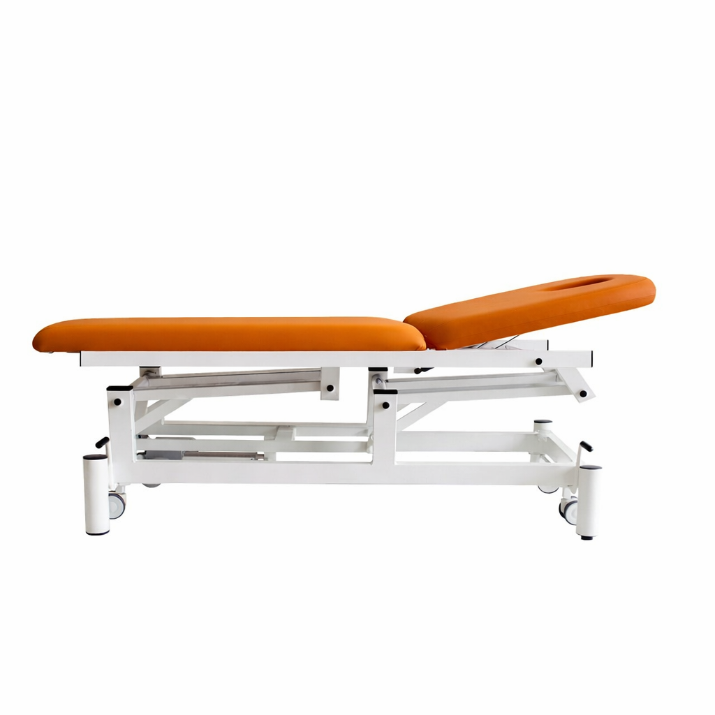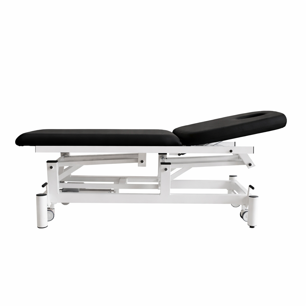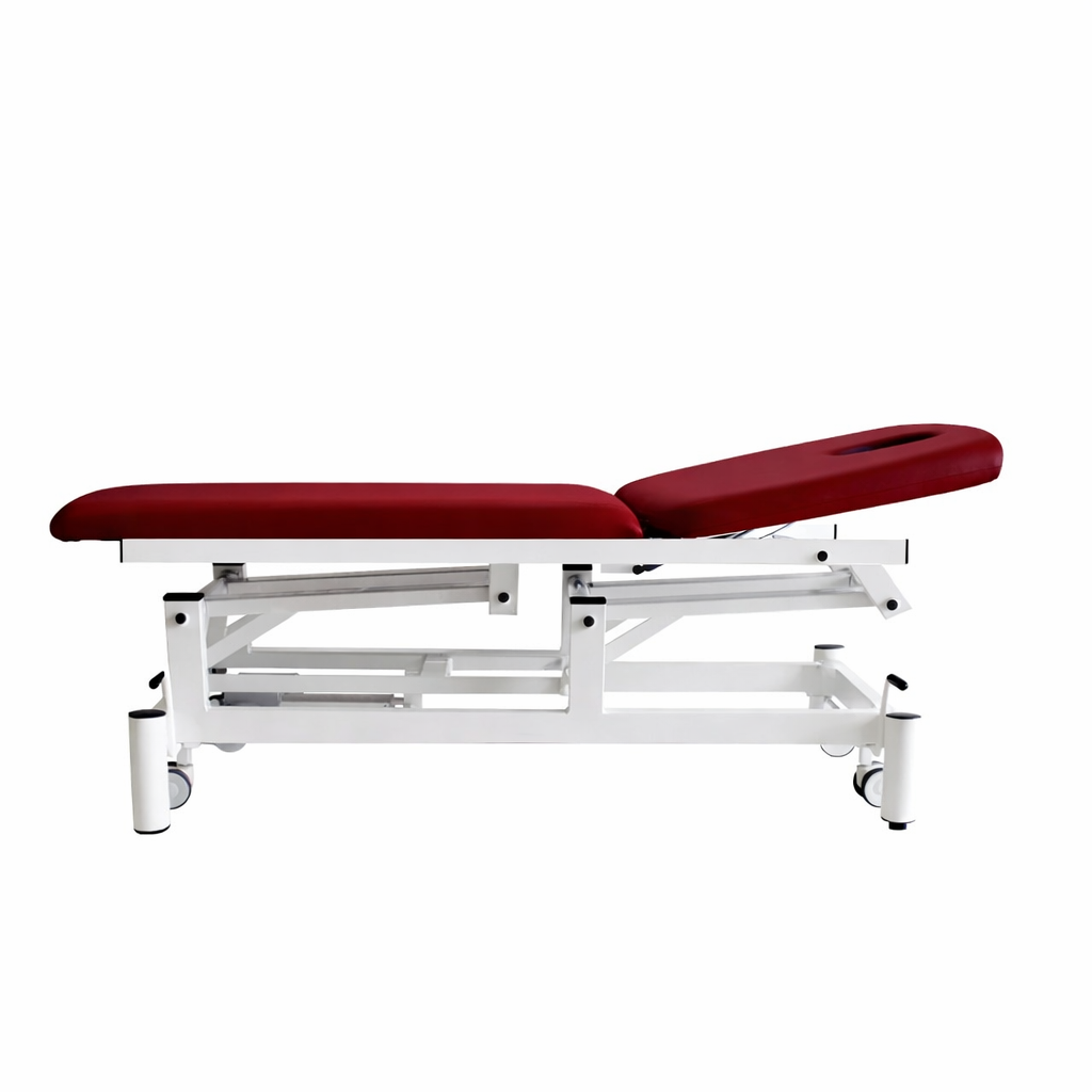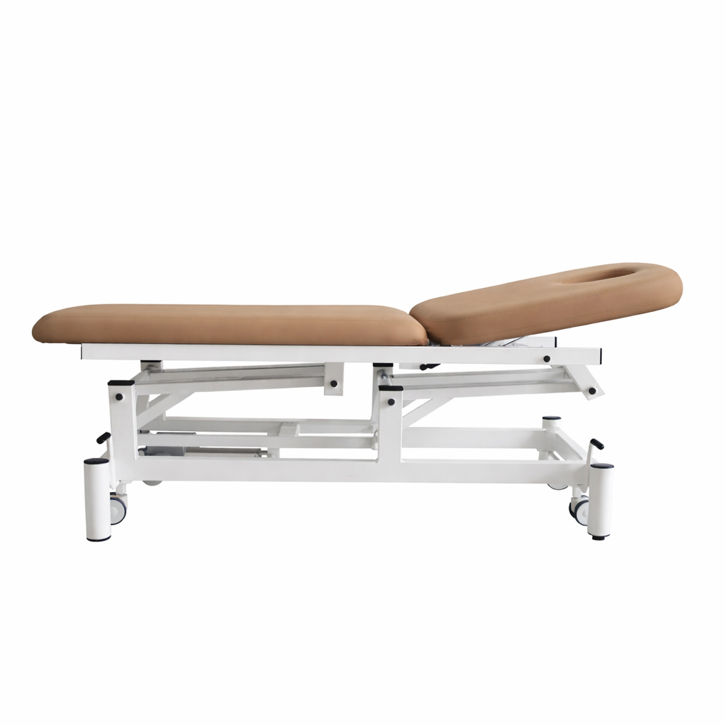 Camilla Electrica de 2 cuerpos con orificio facial. Respaldo regulable + 80º mediante resorte de gas FISIOCONFORT
