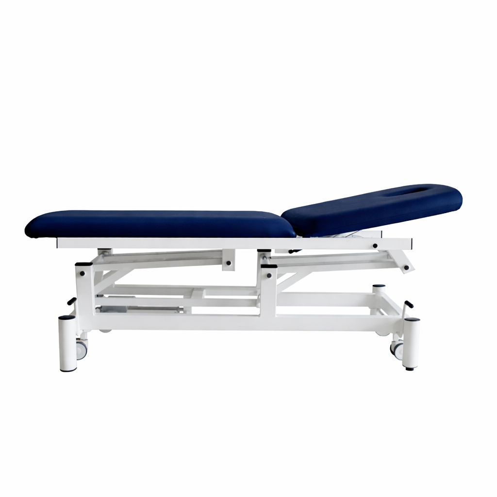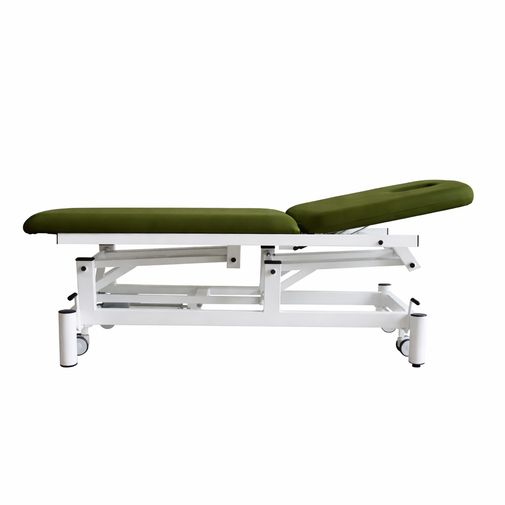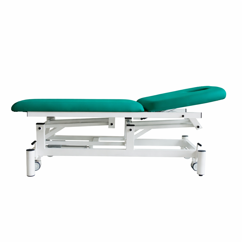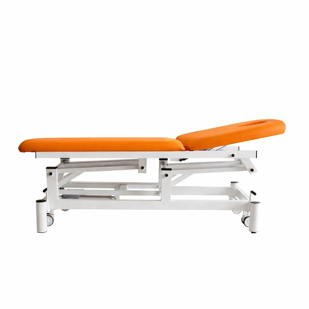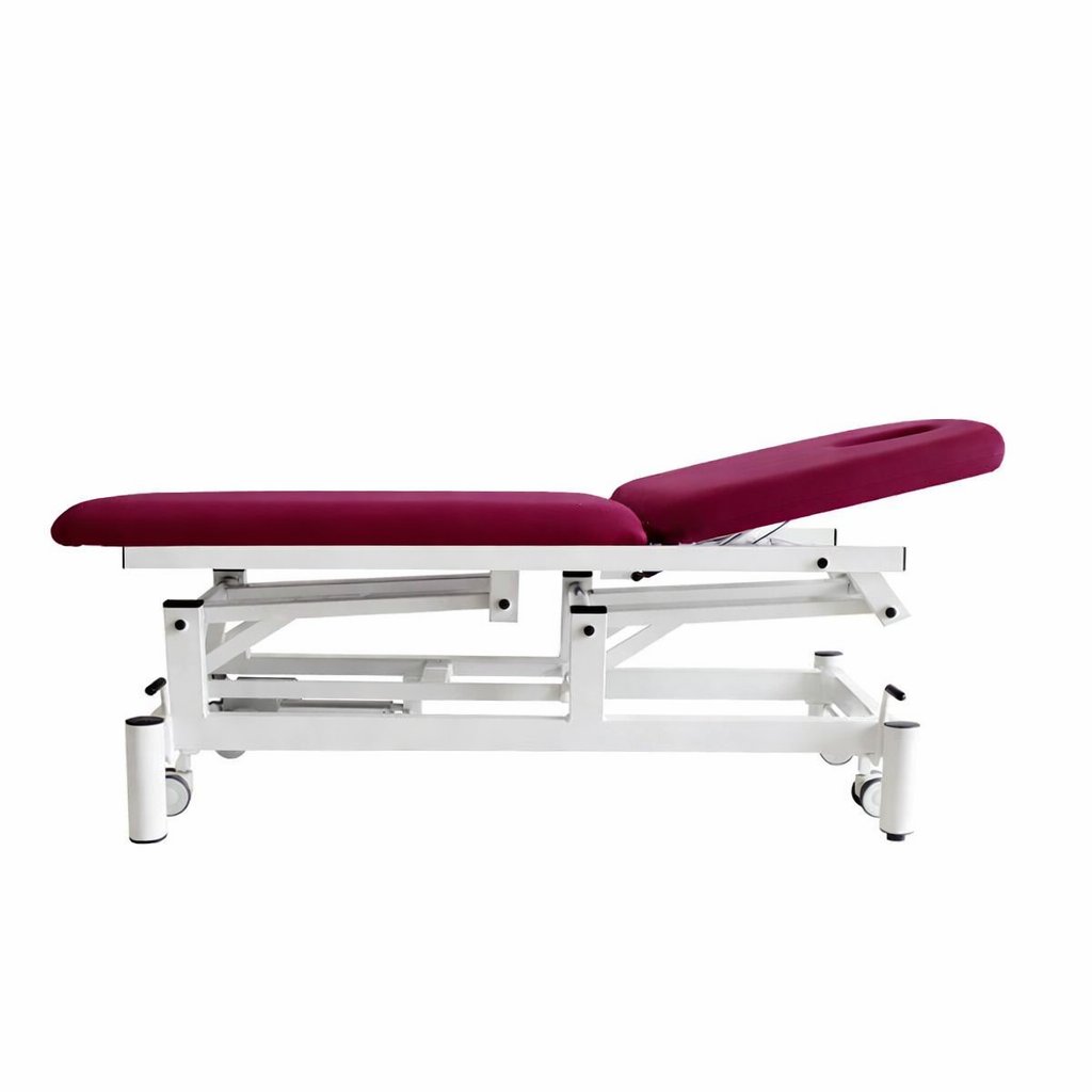 Camilla Electrica de 2 cuerpos con orificio facial. Respaldo regulable + 80º mediante resorte de gas FISIOCONFORT