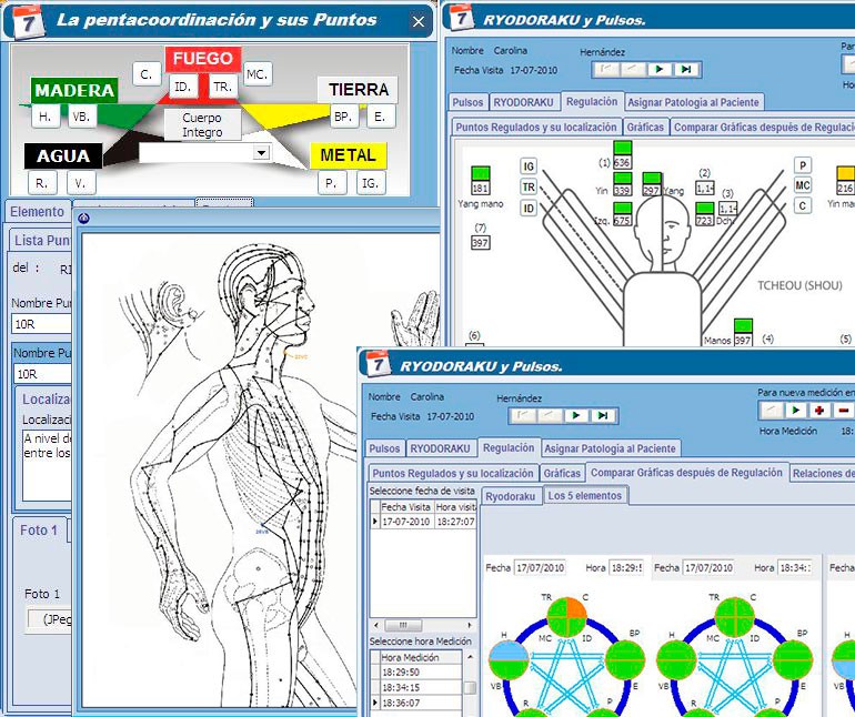 - Gráficos avanzados: Nuestros gráficos de acupuntura, 5 elementos, ryodoraku, pulsos, etc, le permitirán realizar su diagnóstico muy fácilmente.