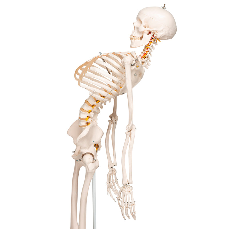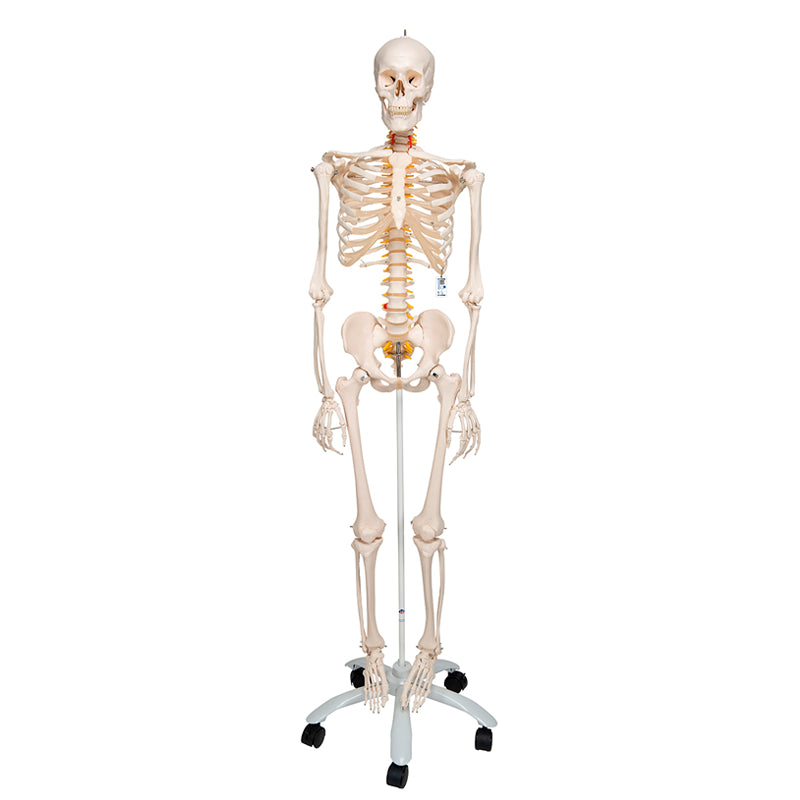 Fred posee todas las ventajas de un esqueleto de 3B Scientific®. Además, la columna vertebral móvil de Fred puede imitar casi cualquier movimiento natural humano.