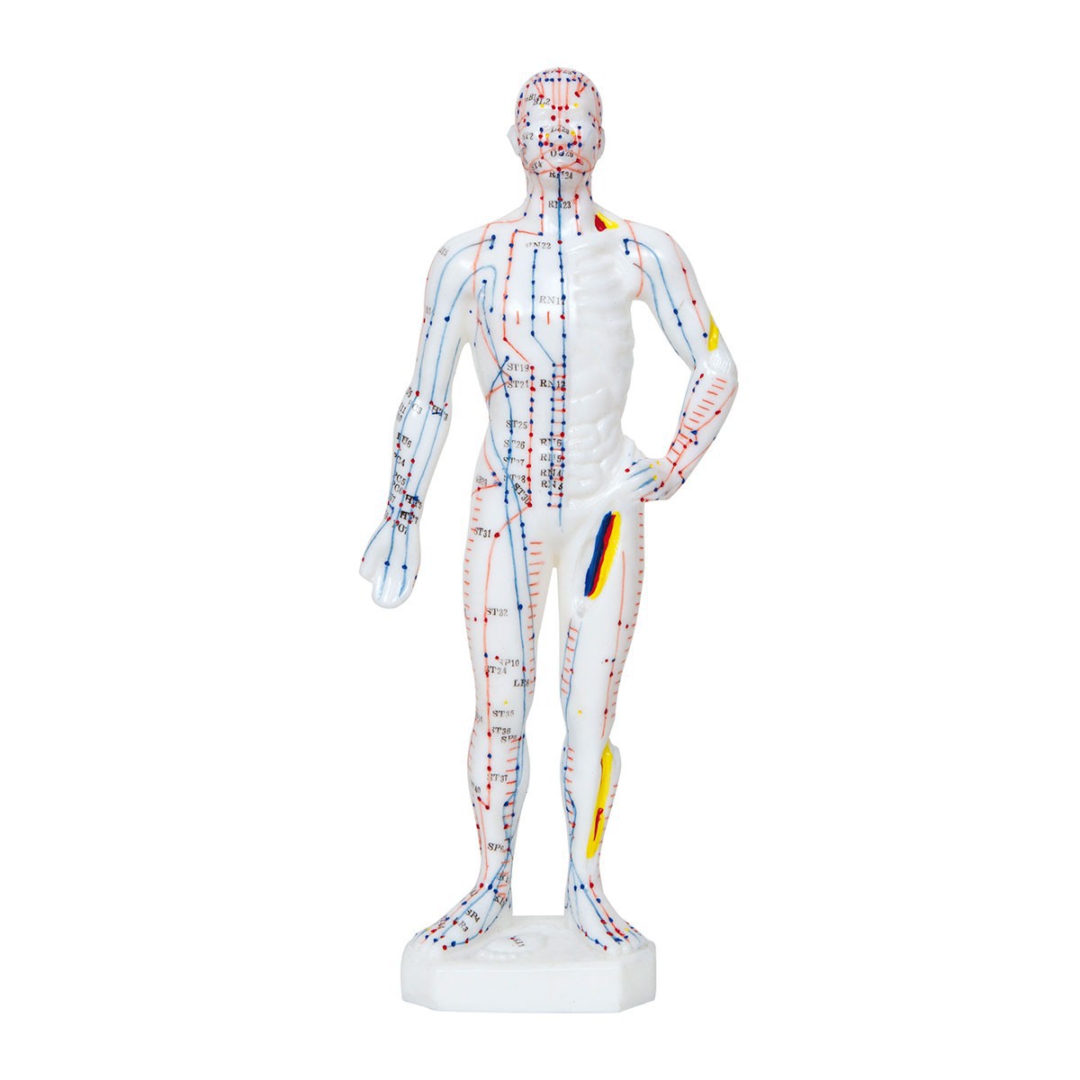 Material: caucho blando pulido. Longitud: 28 cm (con soporte). Color: blanco. Manual: en chino e inglés. Simbología occidental. Manual de 62 págs. en inglés y chino con número y nombre de los puntos de Acupuntura.