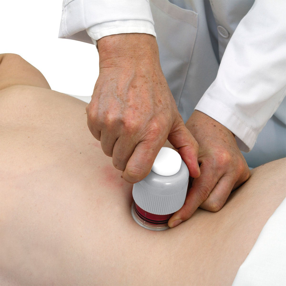 Su acción reside en crear una presión negativa de forma mecánica en el interior de la ventosa, de manera que se genere una congestión sanguínea en la piel donde se localiza el punto. De este modo la energía y la sangre circulan libremente por los meridianos y colaterales. Características: