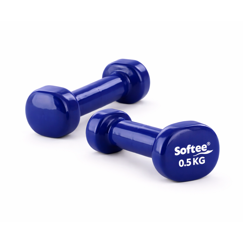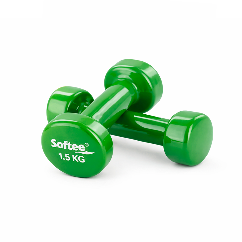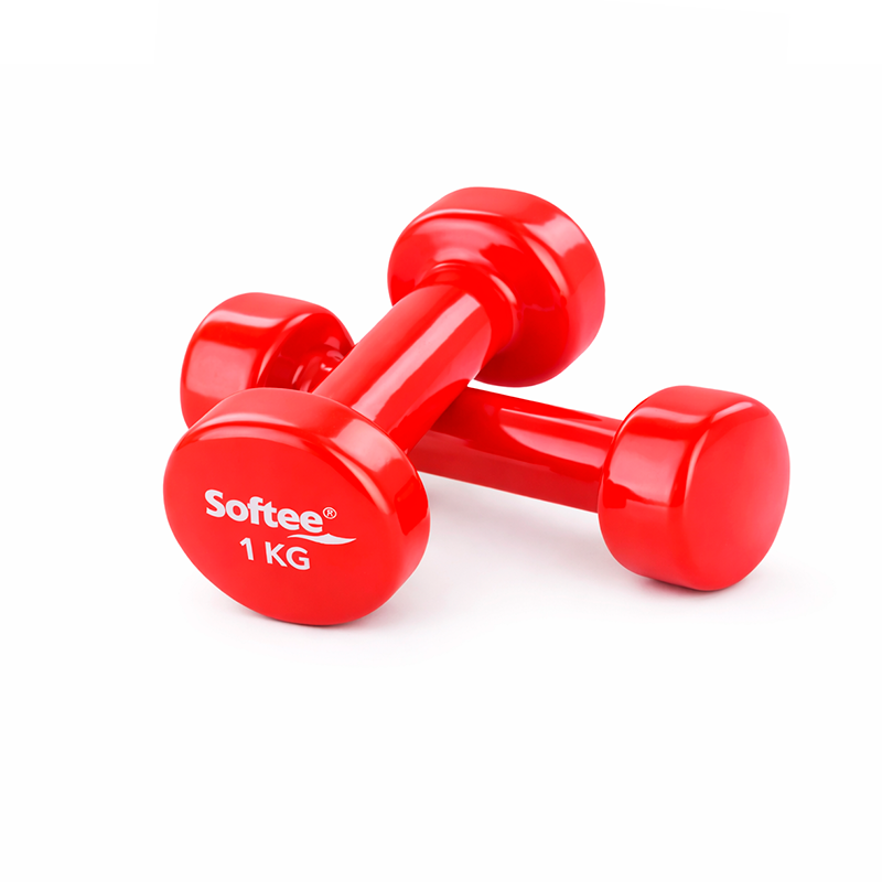 Juego de 2 mancuernas recubiertas de vinilo. Presentación en caja de cartón. Ideales para realizar ejercicios de tonificación y resistencias musculares.