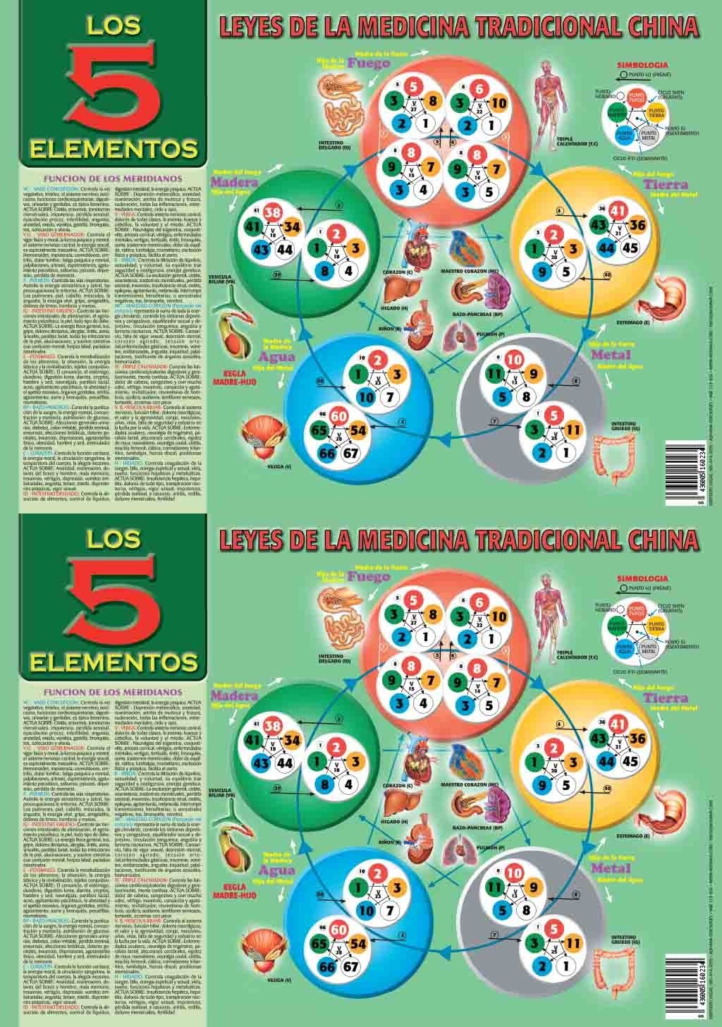 Lámina de los cinco elementos, plastificada en tamaño A4 doble cara.