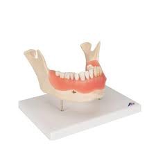 El modelo se basa en una reproducción fiel, a 2 aumentos, de una mandíbula de un adulto con 16 dientes separables.