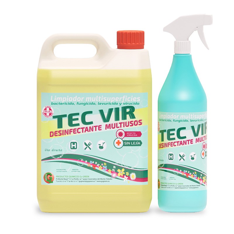 TEC VIR es un desinfectante, listo al uso, de aplicación en el ámbito público y privado, en la industria alimentaria y restauración colectiva, allí donde se requiere una máxima calidad higiénica (obradores, utensilios, bandejas y elementos de transporte de alimentos, superficies en estancias, cocina, aseos y baños, y todo tipo de superficies en lugares de pública concurrencia, incluido el mobiliario). Desinfectante para la limpieza y desinfección en una sola operación de superficies y utensilios fuertemente contaminados, por aplicación directa sobre las superficies mediante pulverización y extensión con paño o papel desechable.