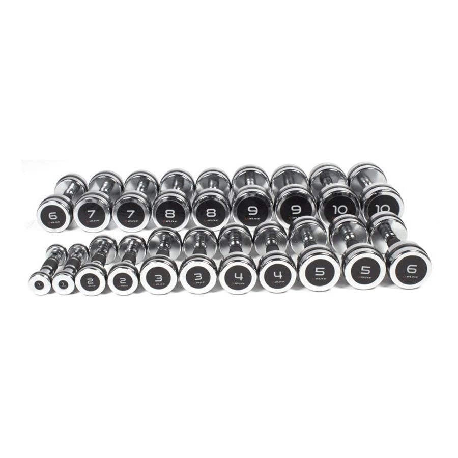 La empuñadura incorpora inserciones de poliuretano para facilitar el agarre y aumentar la seguridad del usuario. La indicación del peso en la parte lateral es en color y aumentado, facilitando así la identificación del peso. Con un rango de 1kg hasta 10kg, en incrementos de 1kg, son un complemento a las mancuernas más pesadas, y también populares en zonas de entrenamiento femenino. Se venden por pares.