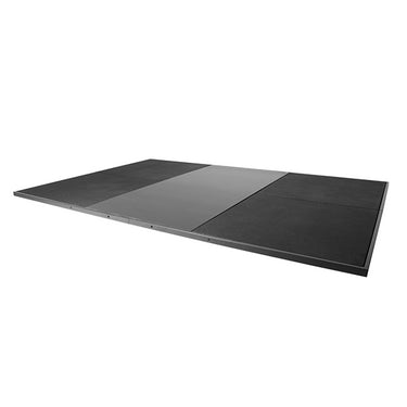 • Dimensiones estándar: Las plataformas de levantamiento suelen tener dimensiones estándar para cumplir con las regulaciones de competición y proporcionar un espacio adecuado para realizar los levantamientos de manera segura. La superficie de la plataforma es lo suficientemente grande como para acomodar al levantador y sus movimientos.