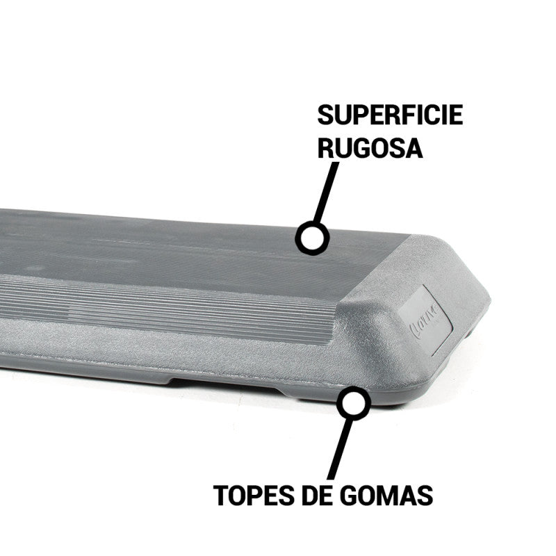 La plataforma presenta una superficie antideslizante rugosa e incorpora refuerzos internos que permiten resistir las clases más desafiantes.