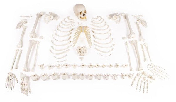 Todos los huesos del esqueleto se representan individualmente. Excelente fundición del esqueleto de un macho adulto. Reproducción fiel a la vida de la estructura ósea con todos los forámenes, fisuras y procesos. El cráneo se puede desmontar en tres partes en el techo del cráneo, la base del cráneo y la mandíbula. Consta de 130 piezas. No apto para autoensamblaje. Se suministra en caja de almacenamiento.