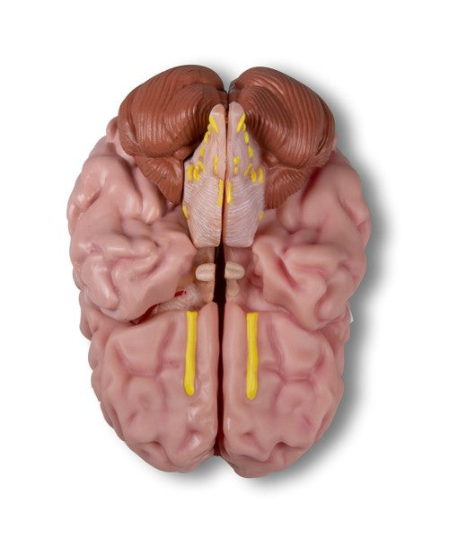 Este modelo de cerebro de tamaño real está cuidadosamente pintado en colores realistas que representan la anatomía principal del cerebro.