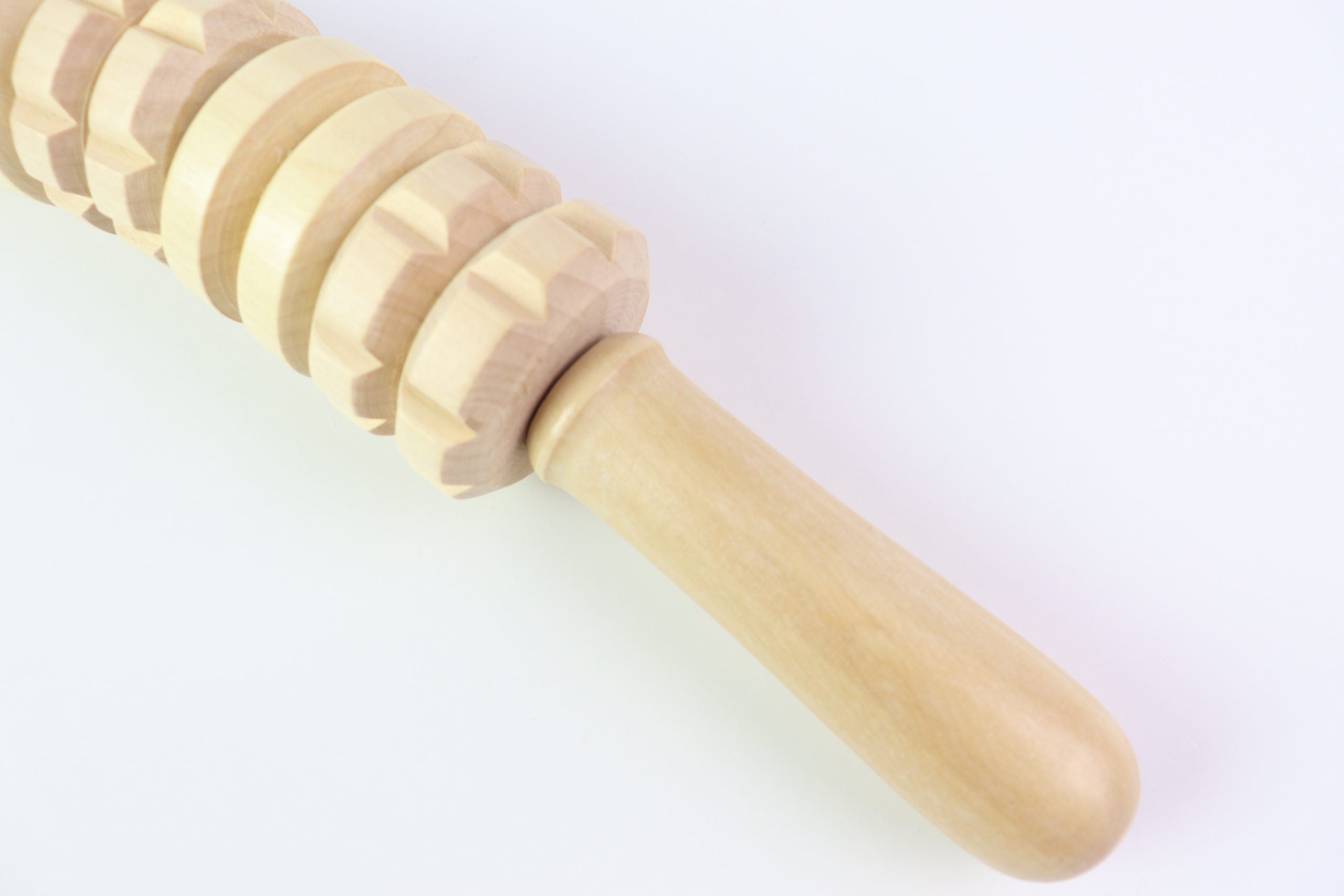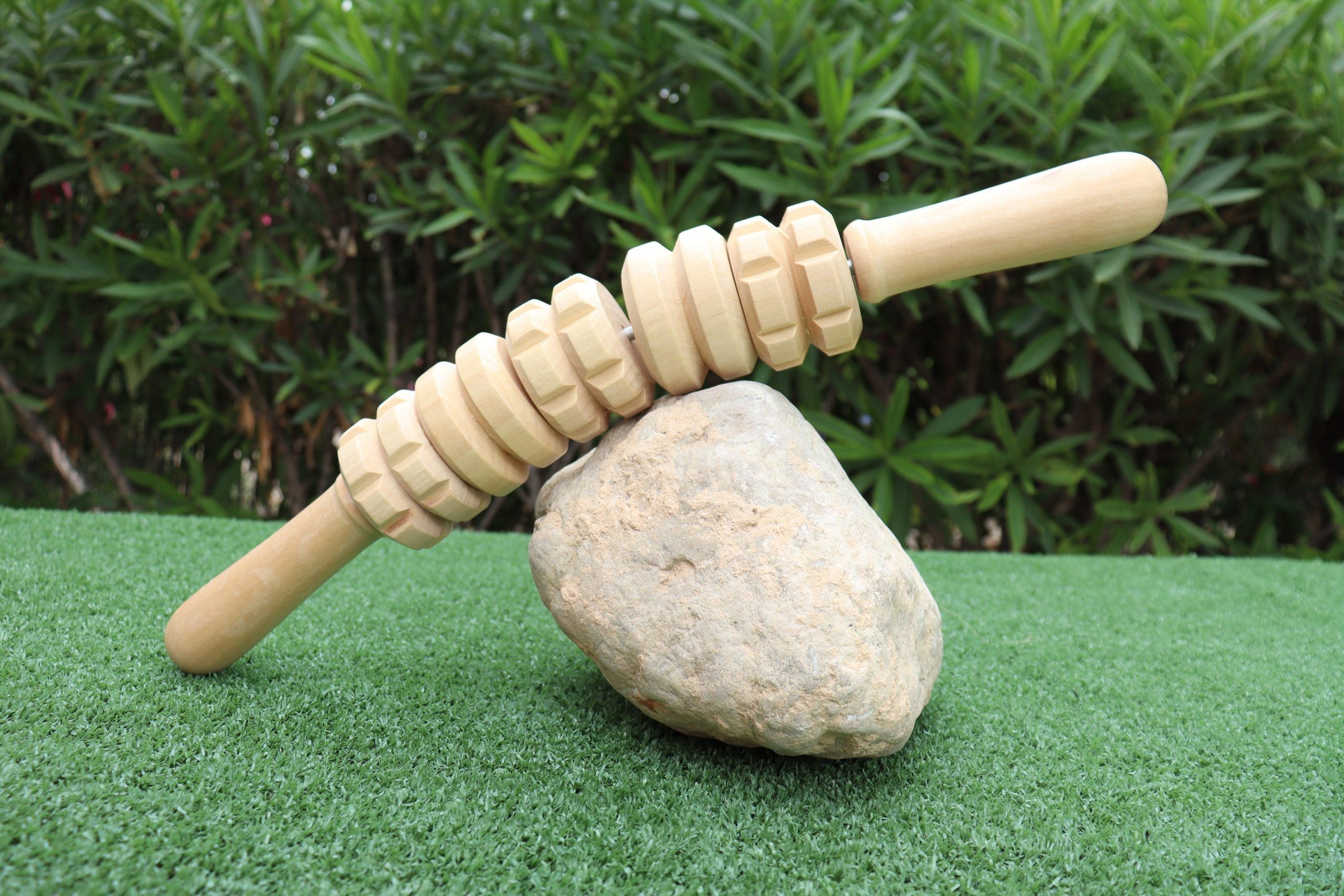 El rodillo curvo Maderoterapia está fabricado en madera de pino y loto, diseñado por Maderoterapia Estética España®