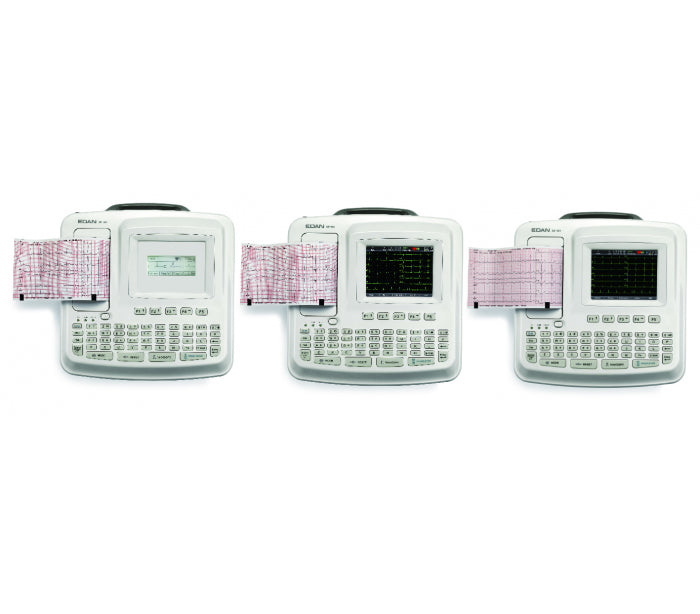 • Electrocardiógrafo Edan de 6 canales automático, manual o ritmo, con pantalla LCD a color de 5,7´´.