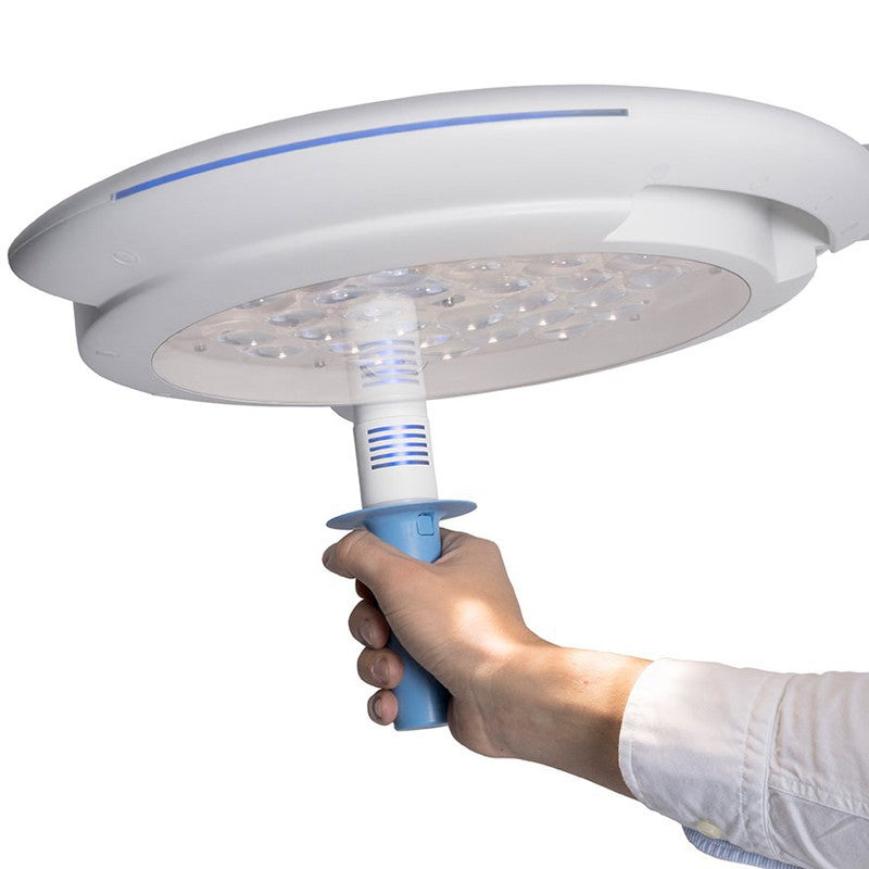 - Intensidad regulable: Permite regular la intensidad de la luz a través de: El giro de la empuñadura esterilizable // Pulsador, situado en el cabezal de la luminaria.