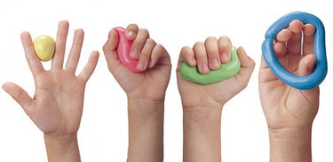 Masilla terapéutica para ejercicios de rehabilitación en manos.