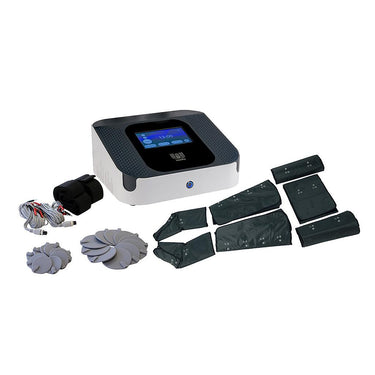 Equipo multifuncional digital de belleza con pantalla táctil que combina 3 funciones: termoterapia, presoterapia y electroestimulación (EMS). Traje compuesto de botas, piernas, faja abdominal y brazos. Incluye también manta para almacenar el traje y 20 electrodos (10 grandes y 10 pequeños), dos conectores y bandas elásticas para sujetarlos. Ideal para mejorar la circulación, facilitar la eliminación de grasas mediante la activación del drenaje linfático, así como la oxigenación celular y la relajación muscular, además del fortalecimiento y la reeducación muscular.