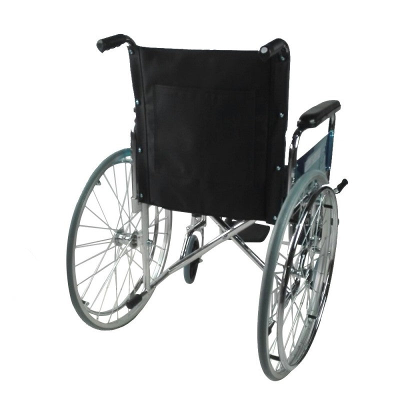 Esta silla para ancianos está fabricada en acero de alta resistencia, lo que le aporta rigidez. Con un respaldo fijo de color negro, contiene reposabrazos extraíbles rectos largos y reposapiés extraíbles, que le harán más cómoda la vida al usuario.