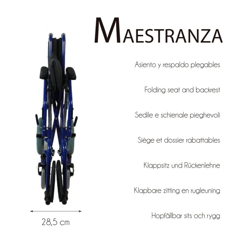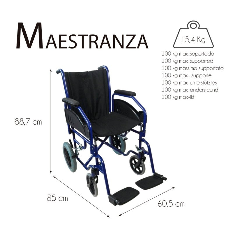 La silla de ruedas modelo Maestranza es un producto sólido con un diseño fantástico. Se trata de una silla manual que proporciona el máximo confort y seguridad, y no solo a la persona que la utiliza, sino también a su acompañante.