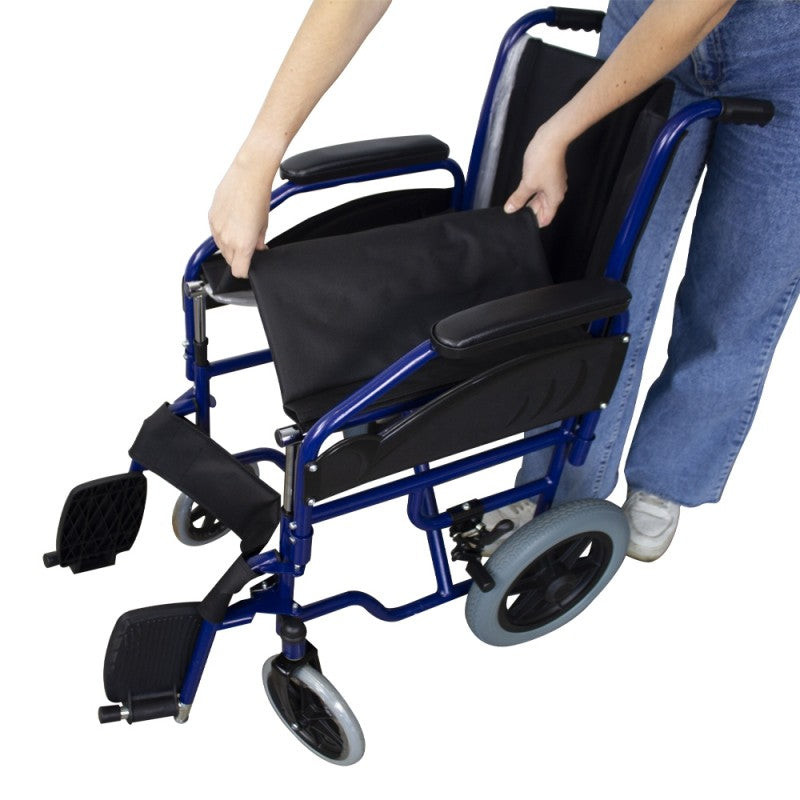 Esta silla ruedas plegable está fabricada en acero de alta resistencia, presentando así una gran estabilidad. Cuenta con respaldo fijo, reposabrazos extraíbles rectos largos y reposapiés extraíbles, que le harán más fácil la vida al usuario.