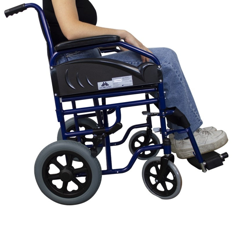 Esta silla de ruedas cuenta con una palanca de pie, la cual es de gran ayuda para el acompañante a la hora de subir y bajar pequeños escalones. Esta silla de ruedas plegable y ligera dispone de un juego de ruedas macizas. Esta característica suprime el riesgo de sufrir un pinchazo desacertado y la convierten en el producto perfecto para el uso de exterior.